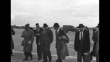 Airplane carrying delegates landing at Heathrow Airport / plane taxiing / Yemeni delegates Emir Saif al-Islam Abdullah and his brother Emir Quadhi Abdullah al-Shami getting off plane and being greeted by officials / closer shot of the two brothers being greeted / the brothers posing for photos on tarmac / Egyptian delegation walking across tarmac / close shot of chief Egyptian delegate Sanhouri Pasha posing / plane taxiing to stop / Transjordan delegate Samir al-Rifai, Prime Minister of Transjordan, shaking hands with official on tarmac / closer shot of Rifai talking to official / Transjordan delegates walking across tarmac / Note: exact day not known
