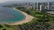 Ala Moana Beach Park and coastal skyscrapers in Honolulu, Hawaii.