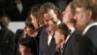 CANNES, FRANCE - MAY 18: Alessandro Borghi, Charlotte Vandermeersch, Felix van Groeningen, Lupo Barbiero and Luca Marinelli attend the screening of "The Eight Mountains (Le Otto Montagne)" during the 75th annual Cannes film festival at Palais des Festivals on May 18, 2022 in Cannes, France. (Footage by Edward Berthelot - Getty Images)