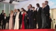 CANNES, FRANCE - MAY 18: Alessandro Borghi, Charlotte Vandermeersch, Felix van Groeningen, Lupo Barbiero and Luca Marinelli attend the screening of "The Eight Mountains (Le Otto Montagne)" during the 75th annual Cannes film festival at Palais des Festivals on May 18, 2022 in Cannes, France. (Footage by Edward Berthelot - Getty Images)