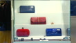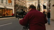 Exteriors of Alexander McQueen store / camera operators in street / clothes and handbags on display inside shop (seen through window)