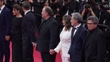 CANNES, FRANCE - MAY 24: (EDITORIAL USE ONLY) (SLOW-MO) (L-R) Alexandre Desplat, Florence Gastaud, Michel Hazanavicius, Grégory Gadebois, Dominique Blanc, Serge Hazanavicius and Patrick Sobelman attend the "La Plus Precieuse Des Marchandises" (The Most Precious Of Cargoes) Red Carpet at the 77th annual Cannes Film Festival at Palais des Festivals on May 24, 2024 in Cannes, France. (Footage by Ming Yeung/Getty Images)