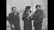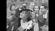 Alice Jaglowski, Miss Chicago, standing with Jake Shubert, producer of Ziegfeld Follies, on her right and Fanny Brice on her left, all three talking about Jaglowski's new contract with the Follies; Brice cracks a joke / CU SOT Jaglowski talking to camera / Jaglowski sitting at table with Shubert and man and Brice / crowd in stands watching / Jaglowski shaking hands with Shubert on her left and Brice on her right