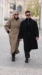 BERLIN, GERMANY - DECEMBER 5: (SLOW-MO) Aline Kaplan wears olive coat Toteme, black turtleneck Mango, skirt Zara, boots Dune London, bag VERAFIED & André Hellmundt wears black coat Review, zipper jumper Arket, jeans Mango, boots Saint Laurent on December 5, 2022 in Berlin, Germany. (Footage by Christian Vierig/Getty Images)