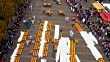 4K color aerial time lapse of the famous Alkmaar Cheese Market. Shot from directly above.