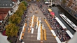 4K color aerial video of the famous Alkmaar Cheese Market. Shot from directly above.