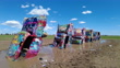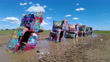 Amarillo, Texas , USA - March 26, 2021: People visit the Cadillac ranch car sculptures amid the Covid-19 pandemic. (Footage By WW News/Gettyimages)