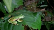 Amazon Leaf Frog (Agalychnis hulli) on a leaf above a rainforest stream - HD stock video