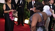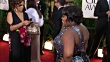 2011: GOLDEN GLOBE AWARDS ARRIVALS: HD: PROFILE MS TD TU ZI MCU Amber Riley turns toward camera, waves and smiles as she poses for paparazzi on the red carpet at the Beverly Hilton Hotel