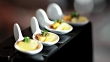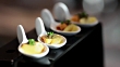 Amuse Bouche with caviar on ceramic tasting spoons