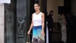 PARIS, FRANCE - SEPTEMBER 28: (SLOW-MO) Amy Jackson poses for photographers as she arrives at the Rabanne Womenswear Spring/Summer 2024 show as part of Paris Fashion Week on September 28, 2023 in Paris, France. (Footage by Davide Lamazzi/Getty Images)