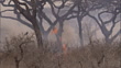 An Abyssinian roller lands on a tree branch near burning grass. Available in HD. (Core Number: NBRD499Y)