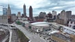CLEVELAND, OHIO - APRIL 2: An aerial view of Rocket Mortgage Fieldhouse ahead of the NCAA Women's Final Four Tournament at Rocket Mortgage Fieldhouse on April 2, 2024 in Cleveland, Ohio. The Women's Final Four starts April 5, 2024. This is also the home of the Cleveland Cavaliers of the National Basketball League. (Footage by Al Bello/Getty Images)