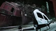 An Ehang passenger drone sits on display at the 2016 Consumer Electronics Show (CES) in Las Vegas, Nevada, U.S., on Wednesday, Jan. 6, 2016. The Ehang 184 is the world's first autonomous human-sized passenger drone. Photographer: Patrick Fallon/Bloomberg. Shots: Wide shots of a large monitor displaying a video demonstration of the EHang drone technology