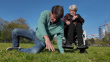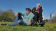 An elderly person with his son in a park - 4K stock video