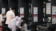 An employee helps a customer from behind a plastic sheet at a branch of MUFG Bank Ltd., a unit of Mitsubishi UFJ Financial Group Inc. (MUFG) in Tokyo, Japan on Friday, May 29, 2020.