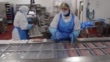 SERVAS, FRANCE - NOVEMBER 24: An employee places pieces of marbled terrine on a conveyor belt at the factory of La Bresse brand specialized in the manufacture of charcuterie on November 24, 2022 in Servas, France. The energy crisis and the soaring costs of pig feed are weakening the pork industry. Without additional measures from the State, many processing companies and farms are likely to close in France. (Footage by Vincent Isore/IP3/Getty Images)
