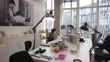 An employee sews at the Maison Michel workshop at the Chanel SA 19M campus, which houses some of its heritage suppliers, in Aubervilliers, France, on Thursday, Jan. 20, 2022. 19M is a design initiative from Chanel which covers 25,000 square meters over seven floors and houses 600 people and 11 Metiers d'Art.