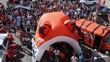 CINCINNATI, OHIO - OCTOBER 5: An inflatable tiger head is set as fans hang outside the stadium ahead of the NFL 2025 game between the Detroit Lions and the Cincinnati Bengals at Paycor Stadium on October 5, 2025 in Cincinnati, Ohio. (Footage by Andy Lyons/Getty Images)