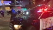An LAPD cruiser sped forward after two demonstrators climbed onto the hood during a protest in Los Angeles to mark the one year anniversary of Breonna Taylor' death. https://www.nbclosangeles.com/news/local/vandalism-and-clashes-with-police-reported-at-breonna-taylors-demonstration-in-hollywood/2549594/ Dozens of protesters gathered in Hollywood late Saturday night to take park in the rally. Police in riot gear were in a tense standoff with protesters at the intersection of Vine Street and Lexington Avenue, https://www.latimes.com/california/story/2021-03-13/los-angeles-police-and-protesters-clash-in-hollywood reports said. This video, by Hess Wesley, shows a police car moving off with two people on the hood of the cruiser. The demonstration was one of dozens held across the country to mark the anniversary of Taylor' death, https://www.latimes.com/california/story/2021-03-13/los-angeles-police-and-protesters-clash-in-hollywood reports said. (Footage By Hess Wesley/Hesitant Heroes/Storyful via Getty Images)