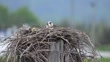 An osprey (Pandion haliaetus) is incubating eggs in a nest...