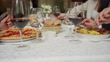 An unrecognizable group of people eating at the restaurant - 4K stock video