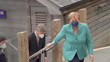 Angela Merkel, German Chancellor, leaves bilateral meeting with Boris Johnson, during G7 Summit, with entourage and husband Joachim Sauer, Carbis Bay, Cornwall (BBC News Rushes - 12/06/2021 - AEXZ288W)