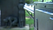Angled WS (Beside) SOFT/IN FOCUS Water hose facing two African-American children huddling at wall, one on hands & knees, female standing facing wall, OUT/IN FOCUS. Civil Rights, racism, West Park