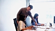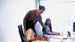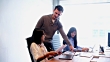 Angry boss scolding female employee for bad work result at conference table, male director yelling at incompetent subordinate blaming for mistake in financial document at diverse team meeting.