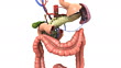 Animation depicting a zoom into the pancreas and surrounding organs. The surrounding organs fade down to reveal the pancreas in more detail, which in turn fades down to show the arteries. - HD stock video