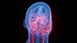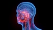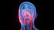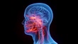 Animation of male anatomy - cranial nerves. plain black background. professional studio lighting. rotation