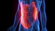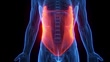 Animation of male anatomy - external obliques. plain black background. professional studio lighting. rotation