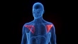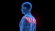 Animation of male anatomy - infraspinatus. plain black background. professional studio lighting. rotation