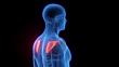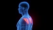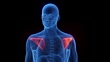 Animation of male anatomy - infraspinatus. plain black background. professional studio lighting. rotation