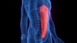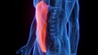 Animation of male anatomy - rectus abdominis. plain black background. professional studio lighting. rotation