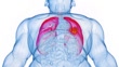 Animation of Male Anatomy - Lung Cancer. Plain White Background. Professional Studio Lighting