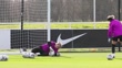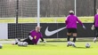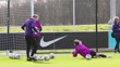 BURTON-UPON-TRENT, ENGLAND - FEBRUARY 24: Anna Moorhouse and Hannah Hampton of England warm up during a training session at St Georges Park on February 24, 2026 in Burton-upon-Trent, England. (Footage by Matt McNulty/Getty Images)