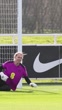 BURTON-UPON-TRENT, ENGLAND - FEBRUARY 24: Anna Moorhouse and Hannah Hampton of England warm up during a training session at St Georges Park on February 24, 2026 in Burton-upon-Trent, England. (Footage by Matt McNulty/Getty Images)