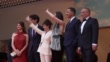 CANNES, FRANCE - MAY 24: Anouk Grinberg, Louis Garrel, Noémie Merlant, Roschdy Zem, Anne-Dominique Toussaint and Jean-Claude Pautot attends the 75th Anniversary celebration screening of "The Innocent (L'Innocent)" during the 75th annual Cannes film festival at Palais des Festivals on May 24, 2022 in Cannes, France. (Footage by Ming Yeung/Getty Images)