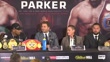 Anthony Joshua announces world title fight with Joseph Parker; ENGLAND: London:INT***WARNING FLASH PHOTOGRAPHY***Anthony Joshua (British Professional Boxer) along as arriving for press conference with Joseph Parker (New Zealand Professional Boxer)Anthony Joshua (British Professional Boxer) press conference SOTAnthony Joshua set up shots with reporter / interview SOT