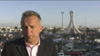 Anti-government protests resume in Manama; Bahraini women protesters chantingFlowers left at shrine in road, in memory of those killed in anti-government protestsPeople looking at makeshift memorialINTMan (brother of man shot by the army) crying as waits on hospital ward Brother lying in comaEXTShots of bullet holes in lamp postReporter being shown bullet holes Vox popINTMedics and wounded inside makeshift medical centre EXTMan smiling as serves food at stall in protest campTea being pouredReporter to camera Protest banner featuring image of Sheikh Khalifa Bin Salman (Prime Minister of Bahrain) and other officials, and slogan 'Wanted for justice'Vox popWide view demonstrators in squareProtesters around monument in squareMan draped in Bahrain flag and another flag flying on mast
