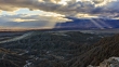 Some sunbeams from atop Font's Point in Anza-Borrego Desert State Park. Camera is facing west towards Borrego Springs.Crepuscular rays /krɪˈpʌskjʊlər/ (more commonly known as sunbeams, sun rays, or god rays), in atmospheric optics, are rays of sunlight that appear to radiate from the point in the sky where the sun is located. These rays, which stream through gaps in clouds (particularly stratocumulus) or between other objects, are columns of sunlit air separated by darker cloud-shadowed regionsMore than 200 years ago, the Spanish explorer Juan Baustista de Anza passed Font's Point leading a band of men, women and mules northward to Monterey, California. The path he forged through the desert followed San Felipe Wash. Father Pedro Font, who served as official chaplain, diarist and observer on Anza's expeditions of 1775-76, described this vantage point of the Borrego Badlands later named for him as the "sweepings of the earth."Font's Point may be the best place in North America to view sediments of the Pliocene and Pleistocene Epochs. But the visitor has to stretch their imagination to visualize a landscape devoid of cacti, Ocotillo and Creosote Bush. During the Pliocene Epoch, (1.6-5 million years ago), Anza-Borrego was located south of the border as a receiving basin for the ancestral Colorado River while it carved out the Grand Canyon.