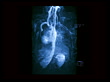 Aortic arch. Coloured rotating magnetic resonance angiography (MRA) scan of the chest. The aortic arch (dark blue, upper centre) carries oxygenated blood from the heart to the rest of the body.. - stock video