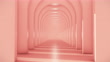 Long tunnel with arches for product presentation,architectural corridor,Rose gold arch door background,Modern minimal concept