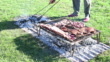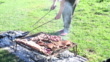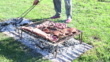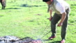 Argentine gaucho grill master managing coals for asado - 4K stock video