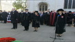 Armistice Day 2004; ENGLAND: London: Westminster Abbey:EXTQueen Elizabeth II and Prince Philip, Duke of Edinburgh standing / Bugler sounds SOTQueen and Duke standing as Sara Jones (Widow of Colonel H Jones) speaking SOT.- They shall grow not old, as we that are left grow old, age shall not weary them nor the years condemn, at the going down of the sun and in the morning we will remember themPULL OUT chimes of Big Ben heard SOT to begin two minutes silenceBugler SOT Queen and Duke standing PULL OUT
