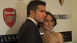 Arsenal footballers attend charity event at Claridge's; Arsenal players (wearing dinner jackets and bow ties) posing for photocall with their partners (WAGs): Robin Van Persie (Footballer) with Bouchra Van Persie, Thomas Vermaelen (Footballer) with Aimee Van Ommen and Cesc Fabregas (Footballer) with Carla Dona Garcia / Van Persie, Vermaelen and Fabregas posing for photocall / Close shot Fabregas / More of Van Persie, Vermaelen and Fabregas / Bouchra Van Persie (Wife of Robin Van Persie), Aimee Van Ommen (Partner of Thomas Vermaelen) and Carla Dona Garcia (Partner of Cesc Fabregas) posing for photocall / Vermaelen and Van Ommen / Van Persie and his wife / Fabregas and Carla Dona Garcia