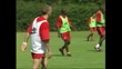 Arsenal team during training including Emmanuel Petit, David Seaman (goalkeeper), Arsene Wenger (Manager) and another standing watching training, GVs training