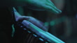 Artist is playing djembe during concert, stage lights change colour - 4K stock video