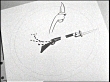 Artists in conversation by a drawing desk as Disney approaches / Disney handing notes to an artist / An artist handing paper to Disney / Disney sketching a Mickey Mouse / Disney handing the sketch to the artist / The artist begins to ink a design / The artist dipping his brush into ink / The design animates and draws itself / The artist putting the finishing touches on the design and holds it up / An artist painting a design onto a plane / Detail of artists' work / Full shot of the character Pluto scratching away fleas depicting dictators /